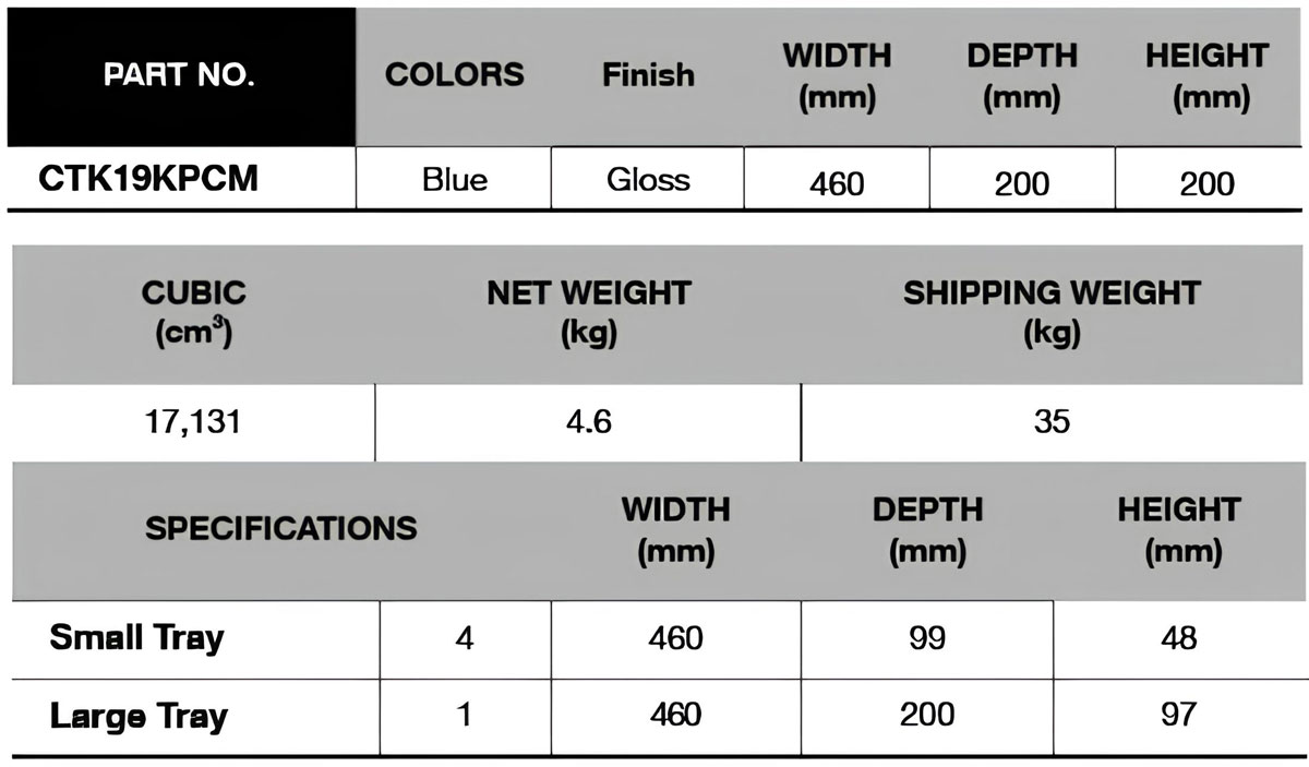 Thông số kỹ thuật của sản phẩm thùng đựng đồ Blue-Point CTK19KPCM 5 ngăn